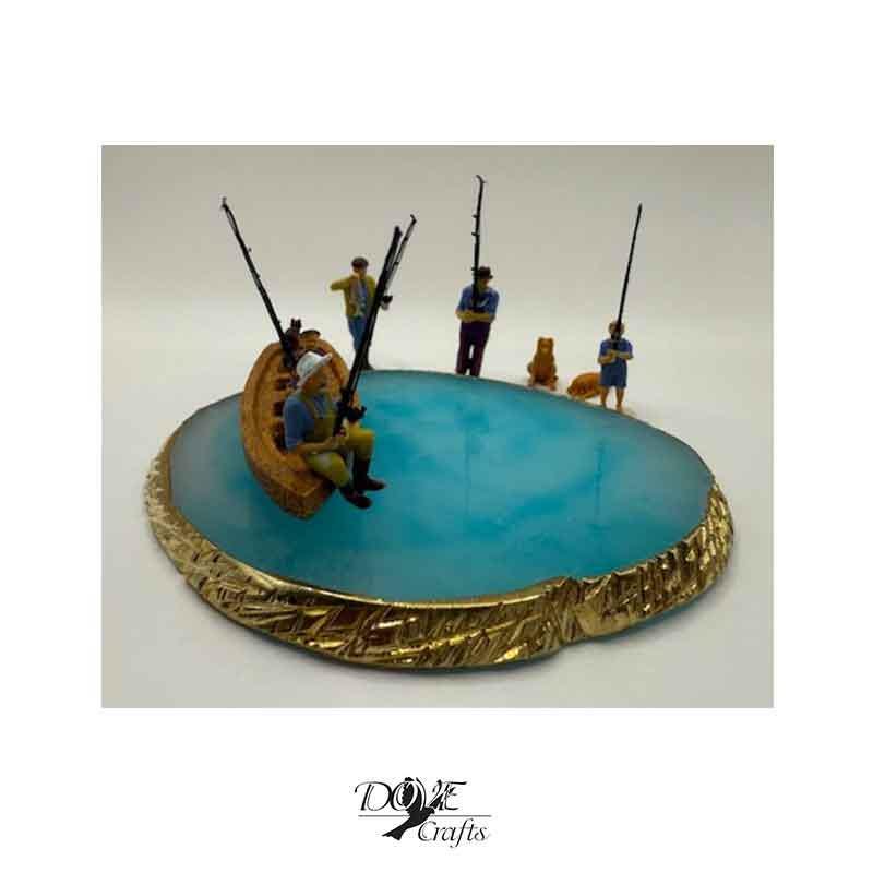Hand Crafted on exotic wood and fisherman made of resin + hand painted